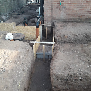 NB. We brought the pipes for the new plumbing out of the ground about a foot in the air and covered the tops with bags. This is so when the builders started, the pipes would be clearly visible for safety and to prevent any debris from falling in and blocking the drain.