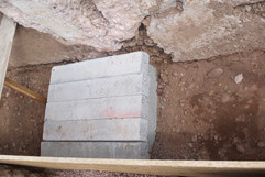 This along with our building regs drawings, photographs of the existing arrangement and application were submitted to Severn Trent as part of the build over agreement. The Building Inspector then checks the arrangements during his site inspection, to be sure we have met what is required and after all the build is complete we have a camera survey to ensure the pipe is still ok. In the diagram you can see the pipe is surrounded by pea gravel to cushion it, topped with concrete lintels to stop the weight from the concrete pressing on the pipe. 7N concrete blocks will then support either ends of the lintels, (which you cannot see in the picture) then the concrete foundations are able to be poured on top, without causing any damage.
