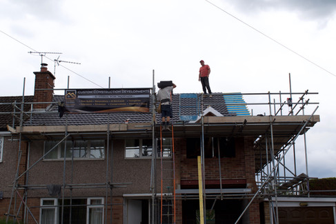 The following day they tiled the single storey rear extension and leaded both roofs. They did run out of caps for the edges, but returned the following weekend to fit those too.