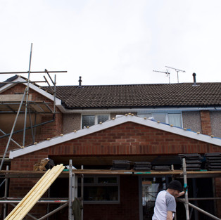 Next they put new felt and lath on to the old front trusses and tiled it with new Marley Major roof tiles in smooth grey. These tiles will be used across the whole front of the roof and on the canopy as well, once it's built.