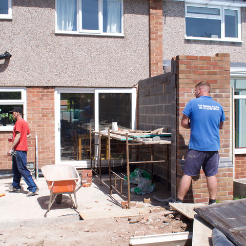 Carl and Ash continued on with the brick laying, reaching the top of the rear extension wall, and the first floor of the side extension, ready for the joists and floor boards to be laid.